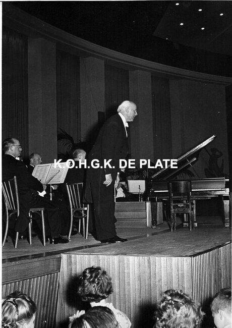 Formaat : 18 x 13 cm. - De concertzaal. Walter Gieseking, piano, met het Nationaal Orkest van België onder de leiding van Edouard Van Remoortel.
