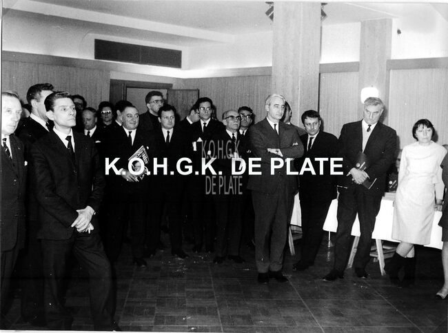Formaat : 18 x 24 cm. - Banket aangeboden aan de president van Kameroen, met rechts van hem, John Lauwereins, waarnemend burgemeester en links, Jan Piers, minister-president Openbaar Ambt en Toerisme