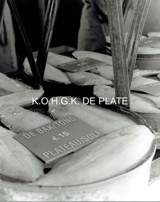 Formaat : 25 x 20 cm. Titel foto : "De vismand". "Zichtn toeng" te koop. Prijskaart : De bak / tong. EUR 15. Plateau / sole.