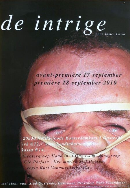 De intrige, naar James Ensor. Avant-première 17 september. Première 18 september 2010. 20u30 NMBS-loods Konterdamkaai 1 Oostende. vvk 12 EUR. Kassa 14 EUR. Theatergroep Hand in 't Oog i.s.m. dansgroep…