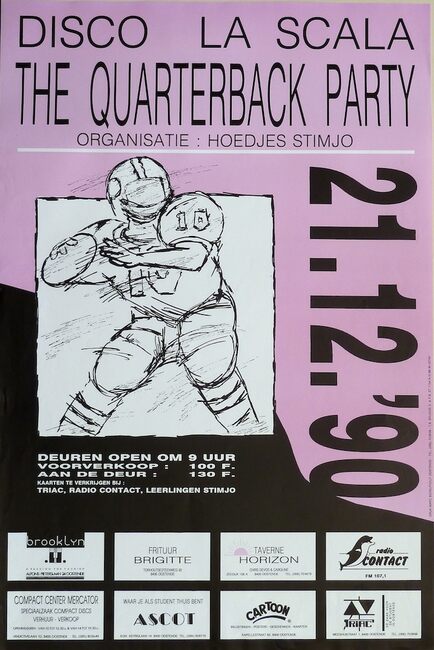 Affiche : Hoedjes STIMJO. The Quarterback Party. Disco La Scala. 21 december 1990.