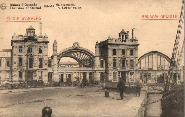 Nels. Ern. Thill, Bruxelles. - Ruines d'Ostende 1914-18 Gare maritime. - The ruins of Ostend 1914-18 The harbour station. - Het spoorwegstation werd zwaar beschadigd tijdens de Eerste Wereldoorlog. De…