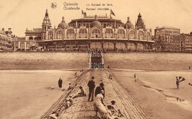 Nels/Thill 13, 77]. Ostende - Le Kursaal de face. Oostende - Kursaal, voorzijde. De noordgevel. Het groot strand en golfbreker.