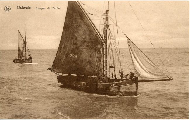 Nels/Thill. - Ostende. Barque de Pêche. Twee eenmastsloepen : De O.94 Marie de Tournai" L. Peere, schipper en Aug. Peere, reder. De O.23 Madeleine, P. Jansoone, schipper en Maurice Desforges, reder. Bron : Rapport…