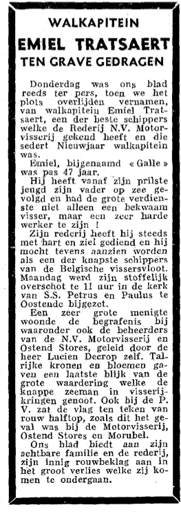 Trefwoorden TRATSAERT EMIEL (SCHIPPER WALKAPITEIN) ZEEVISSERIJ ; BEROEP MOTORVISSERIJ N.V. (REDERIJ) Plaatskenmerk O.D.P.-archieven. Bibliotheek Kris Lambert 11-10-1957 Bron Het Visserijblad Print