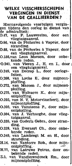 Welke vissersschepen vergingen in dienst van de geallieerden ?