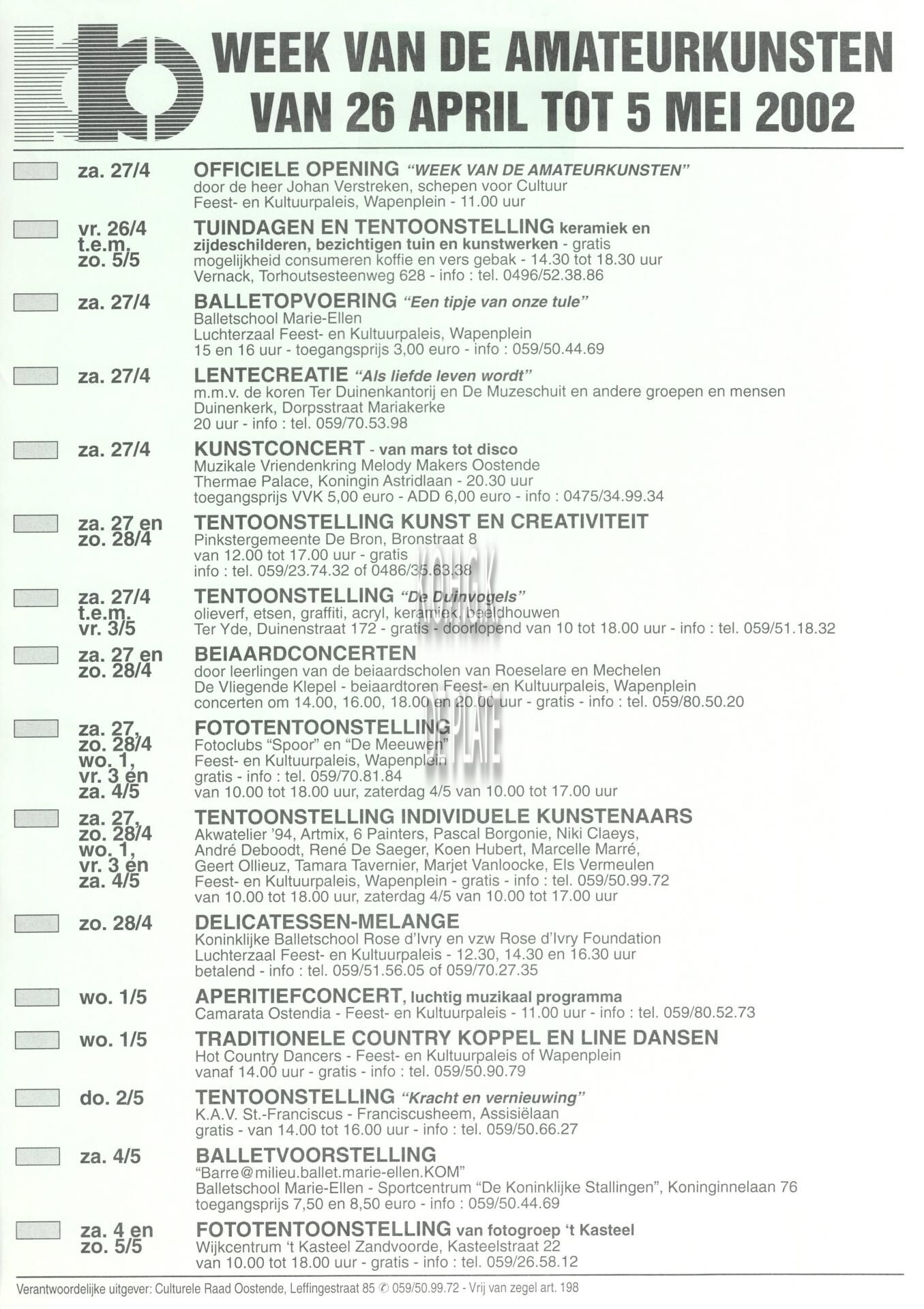 Trefwoorden AFFICHESCULTURELE RAAD OOSTENDE (SOCIO- CULTURELE VERENIGING) ; KALENDER MET EVENEMENTEN