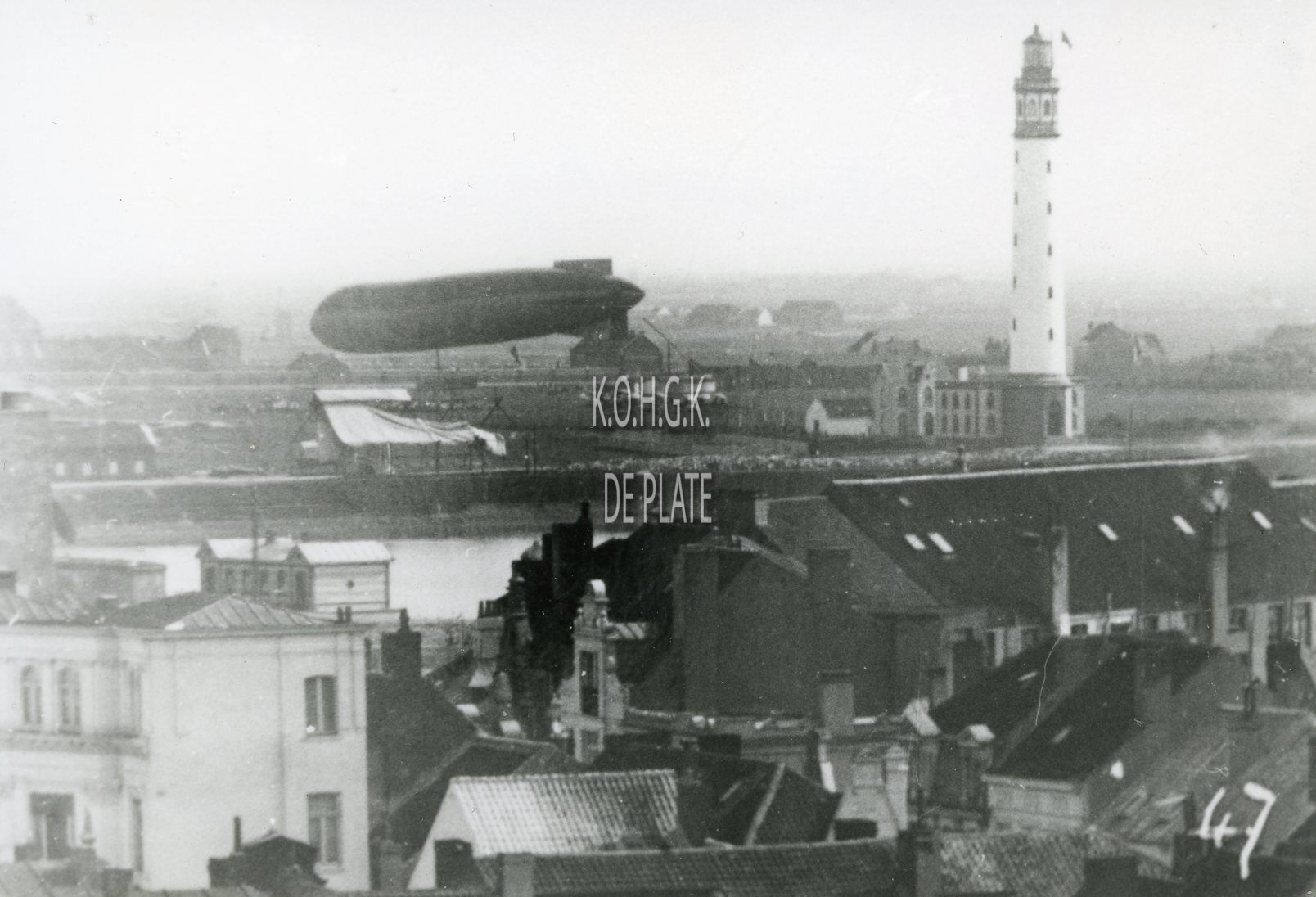 Men bemerkt rechts de tweede vuurtoren en links de loods van de reddingsdienst (op de oever van de Leopoldspuikom)