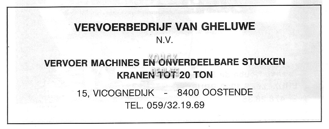 Trefwoorden ADVERTENTIES ; BEDRIJVENVAN GHELUWE (VERVOERBEDRIJF)VERVOER ; TRANSPORTBEDRIJVENVICOGNEDIJK