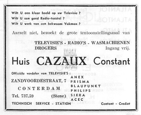 Trefwoorden ADVERTENTIES ; HANDELHUIS C. CAZAUX (RADIO- EN TELEVISIEHANDEL)ZANDVOORDESTRAAT