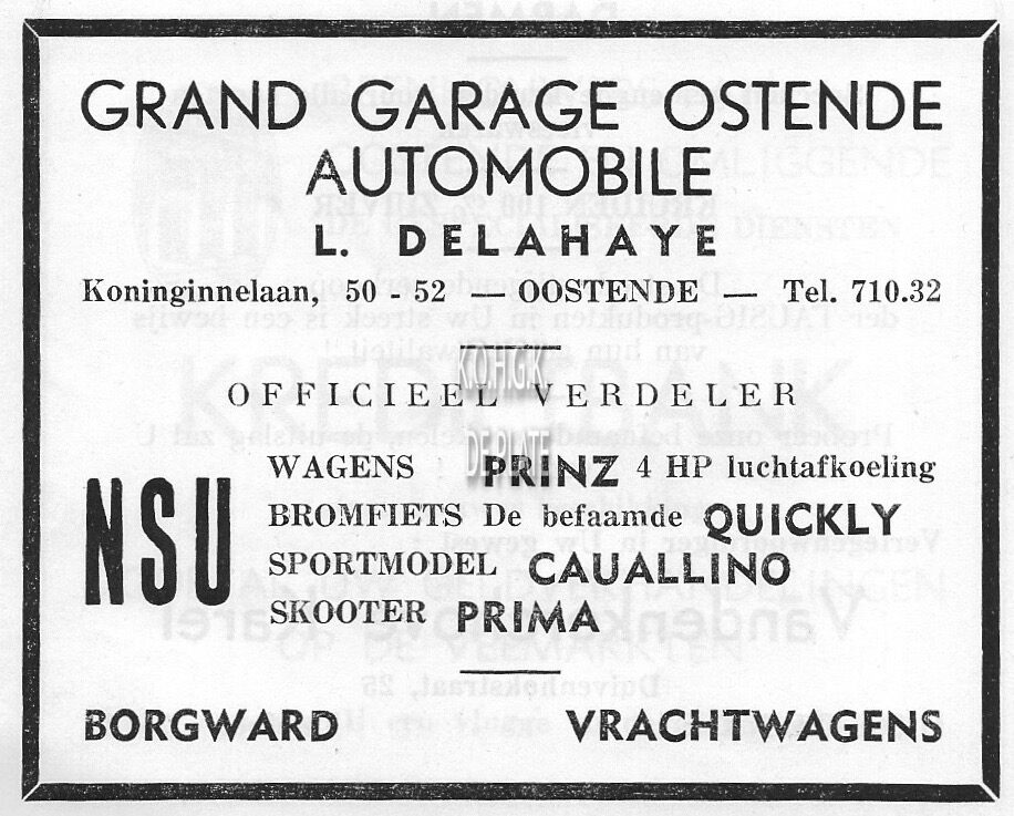 Advertentie : Garage Piessen. Van Iseghemlaan 33, Oostende