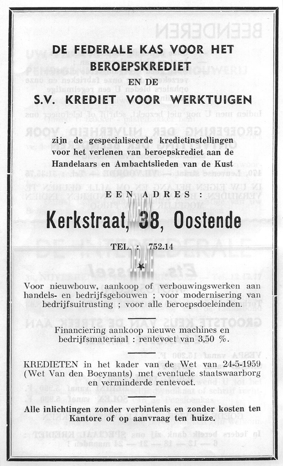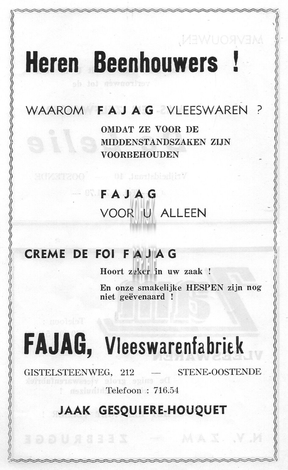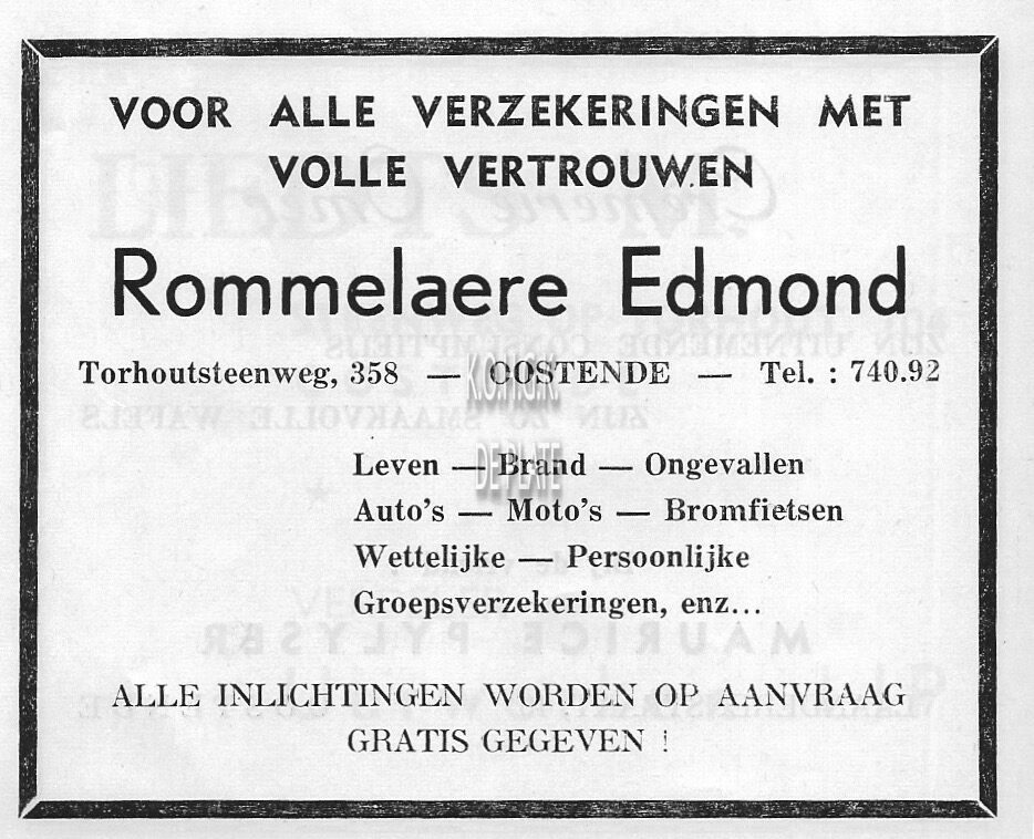 Advertentie : Figinor. Kapellestraat 93, Oostende