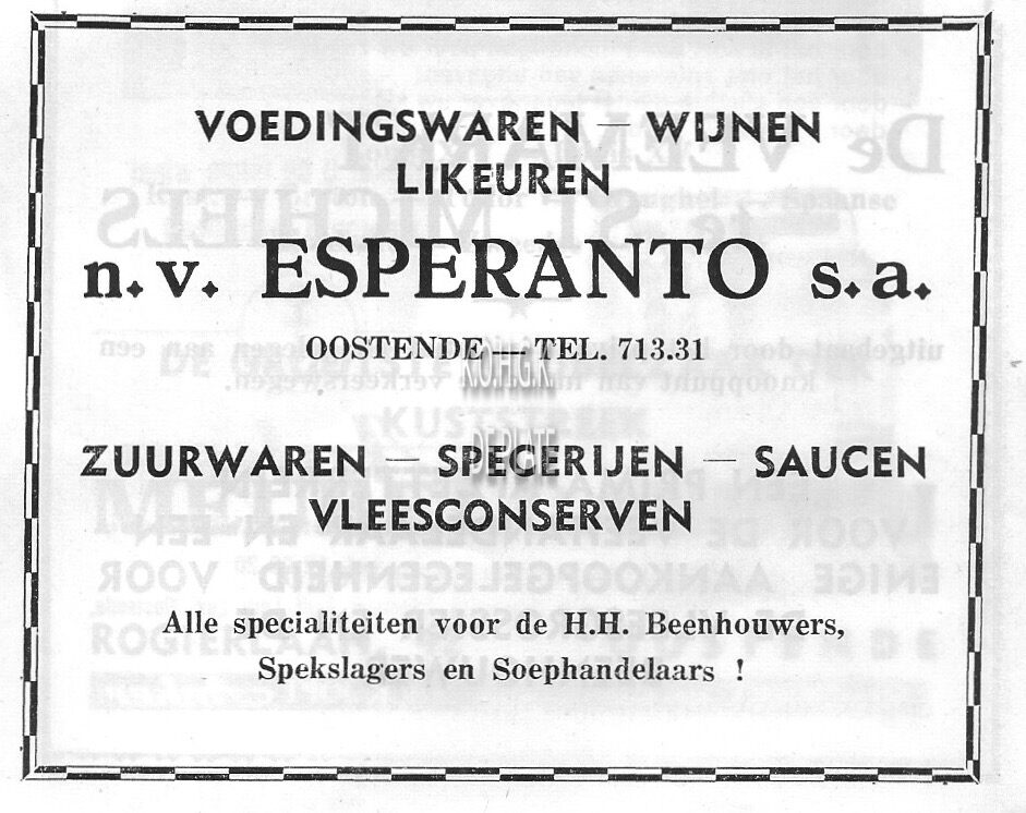 Advertentie : Esperanto. Voedingswaren - Wijnen - Likeuren. Torhoutsteenweg 210, Stene