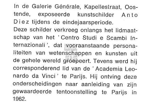 Trefwoorden DIEZ ANTO (1914-1992) (KUNSTSCHILDER)KUNSTSCHILDERS Auteurs Gyselen G.