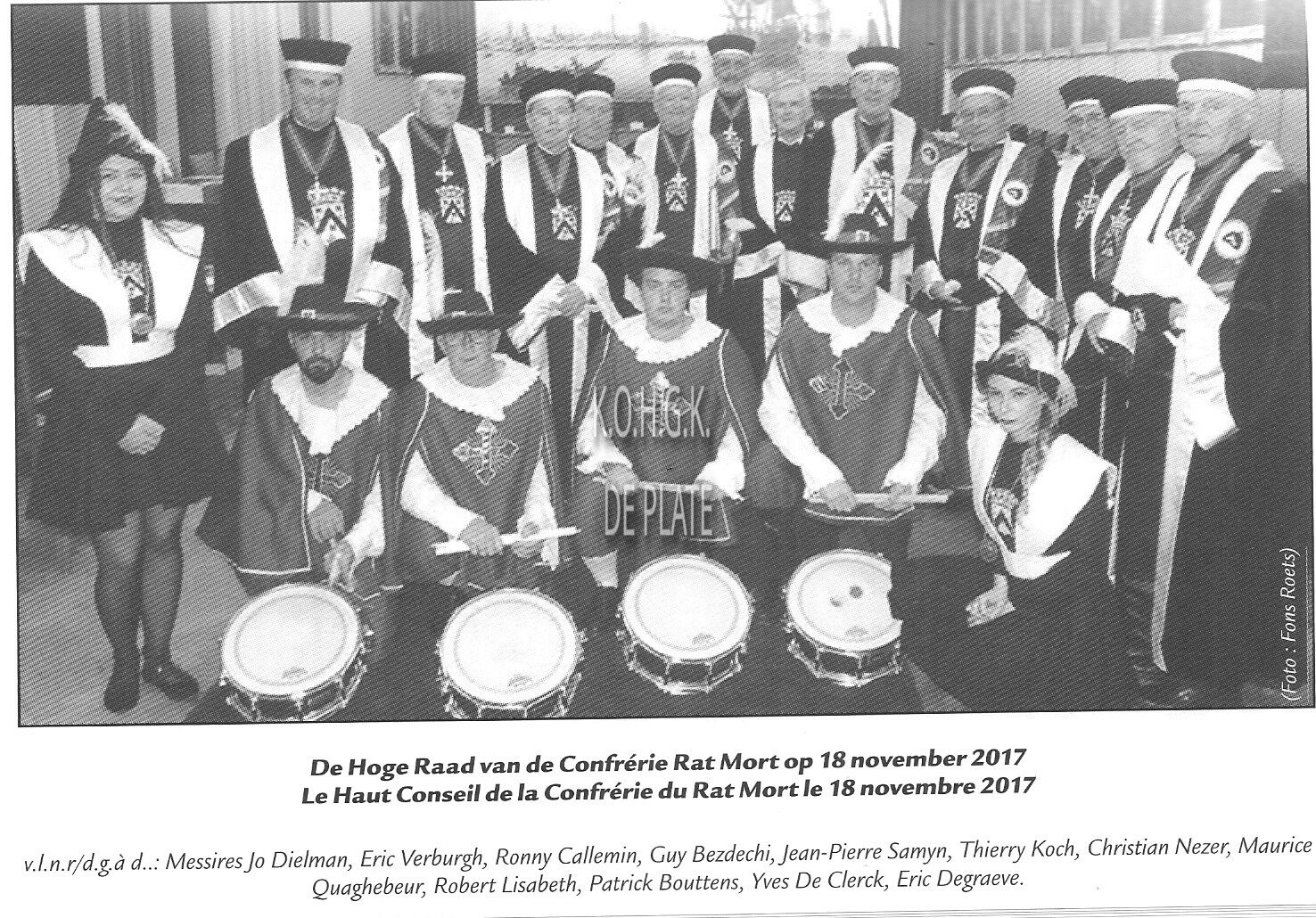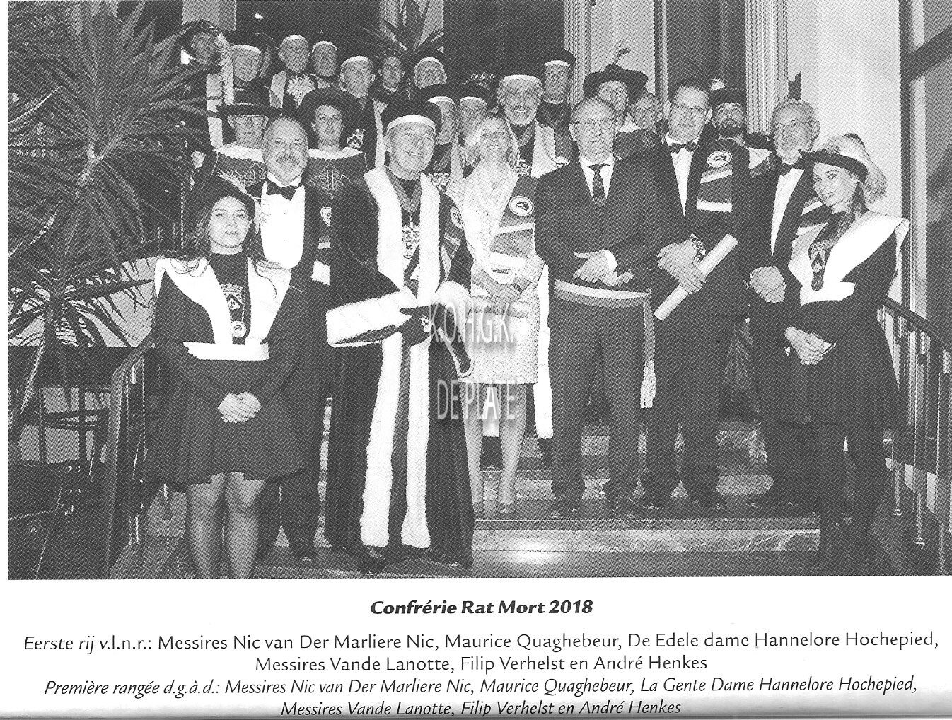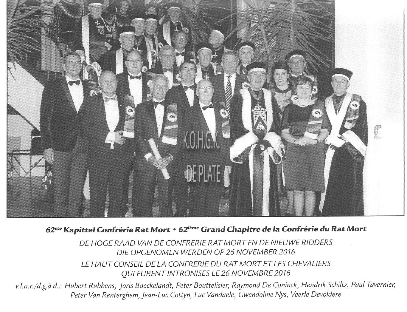 CONFRERIE RAT MORT (SOCIO-CULTURELE VERENIGING)RUBBENS HUBERT (MILITAIR ORGANISATOR OOSTENDE VOOR ANKER)BOUTTELISIER PETER (ZAAKVOERDER)NYS GWENDOLINE (ADJUNCT DIRECTEUR CASINO KURSAAL OOSTENDE)BAECKELANDT JORISDE CONINCK RAYMOND (ZAAKVOERDER)SCHILTZ HENDRIK (ZAAKVOERDER RECHTER IN HANDELSZAKEN)TAVERNIER PAUL (ADVOCAAT STAFHOUDER BRUGSE BALIE)VAN RENTERGHEM PETER (ZAAKVOERDER RECHTER IN HANDELSZAKEN)COTTYN JEAN-LUC (ADVOCAAT ERE-ADVOCAAT-GENERAAL HOF VAN BEROEP GENT)VANDAELE LUC (ERE-RECHTER IN HANDELSZAKEN)DEVOLDERE VEERLE (ZAAKVOERDER)
