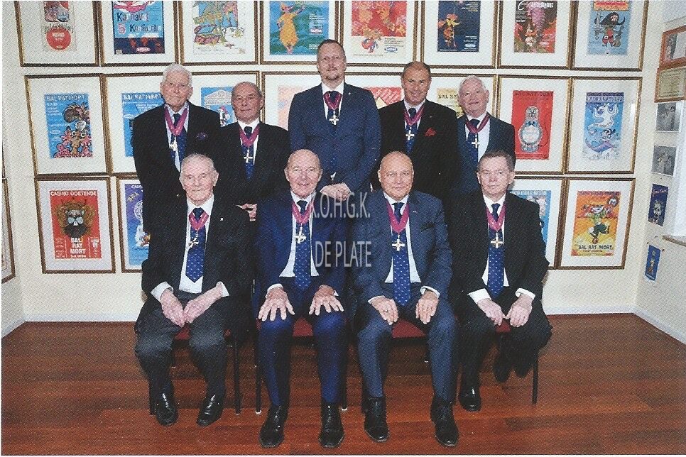 De nieuwe ridders geïntroniseerd bij de Hoge en Edele Confrerie Rat Mort Oostende. 20/11/2021