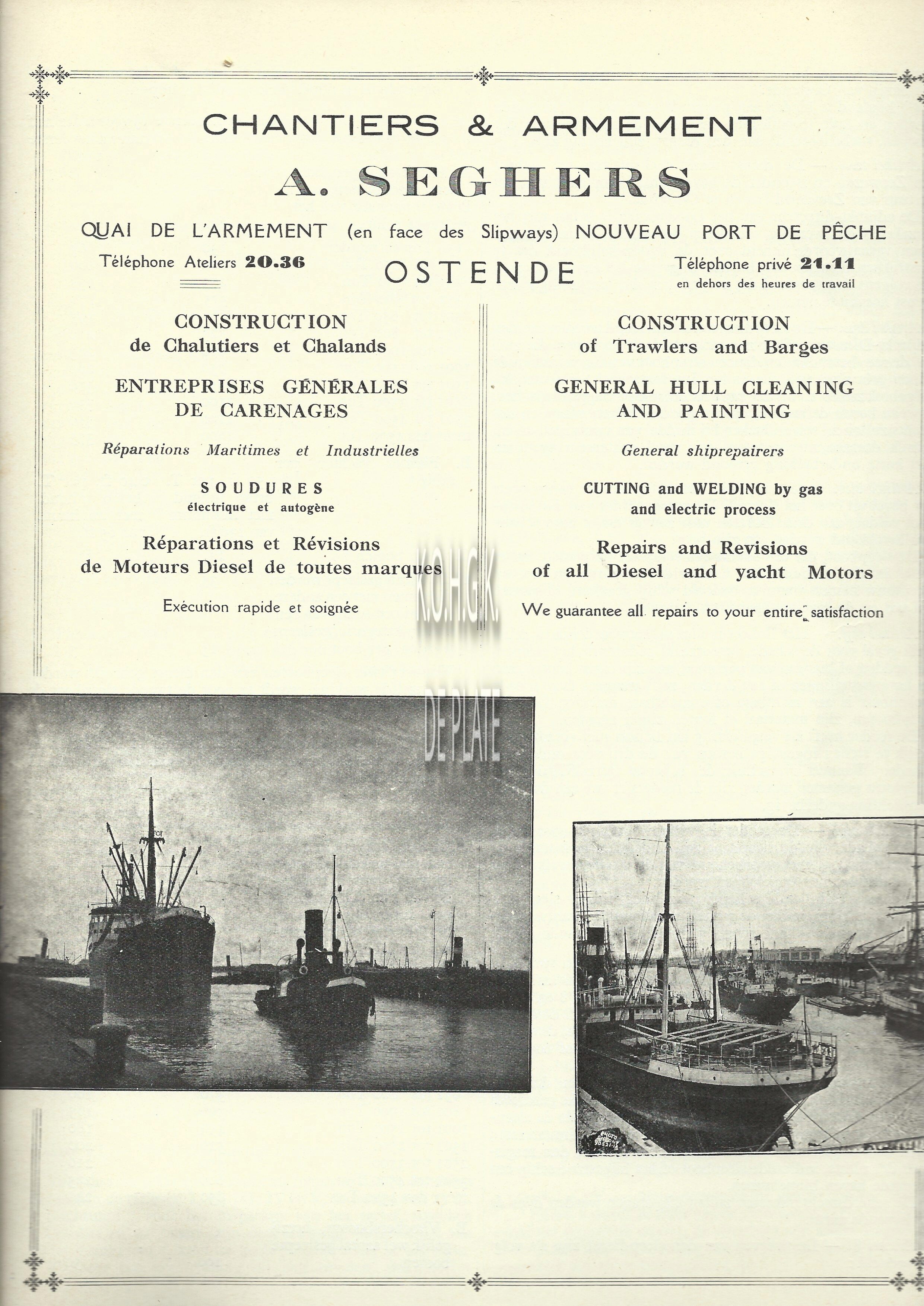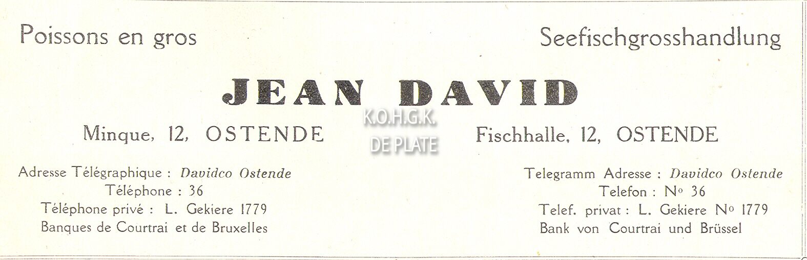 Advertentie : Maison Debra, armateurs-mareyeurs, Minque 39, Ostende