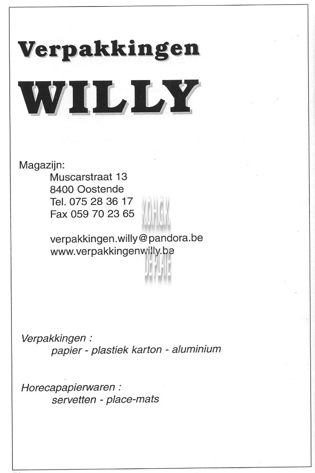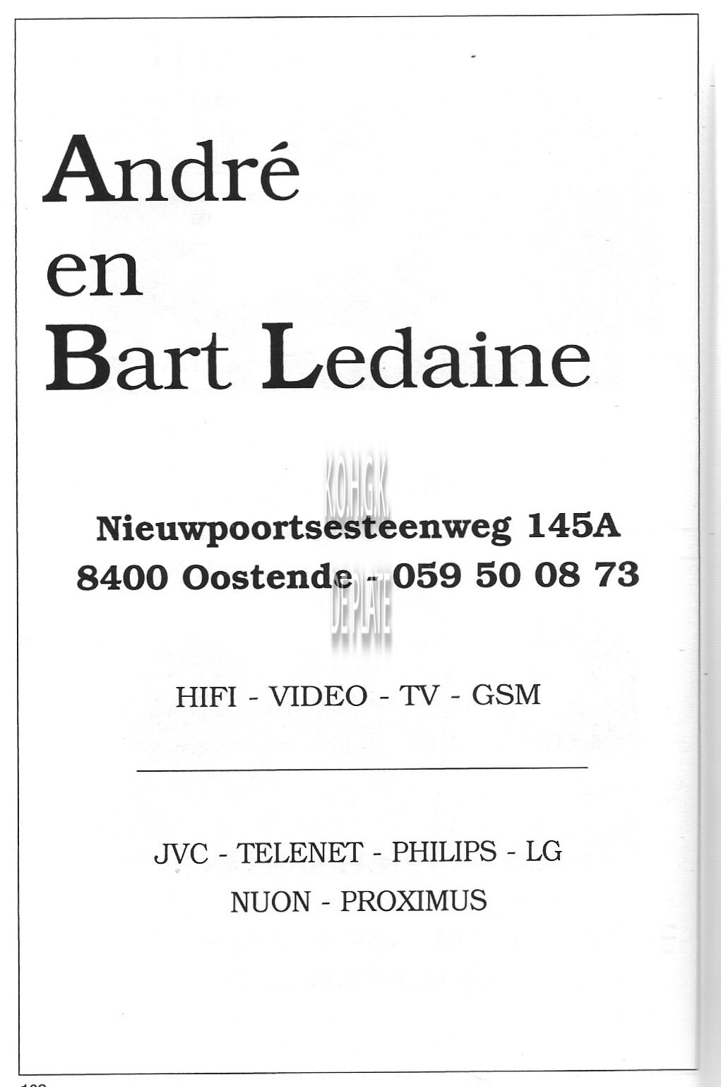 Trefwoorden ADVERTENTIES ; HORECALE CHATELET (CAFÉ)NIEUWPOORTSESTEENWEGCAFES