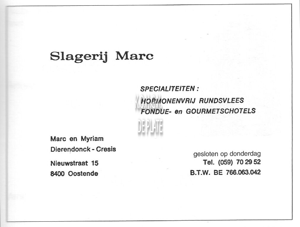 Advertentie : Slagerij Marc. Nieuwstraat 15, Oostende