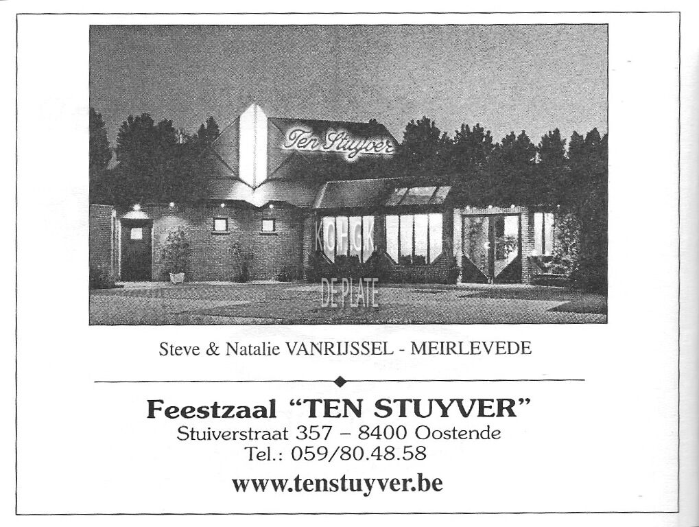 Trefwoorden ADVERTENTIES ; HORECATEN STUYVER (FEESTZAAL)STEVE EN NATALIE VANRIJSSEL-MEIRLEVEDESTUIVERSTRAAT