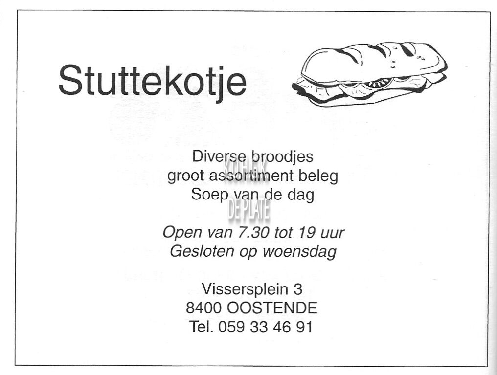 Advertentie : Stuttekotje. Broodjes - Soep. Vissersplein 3, Oostende