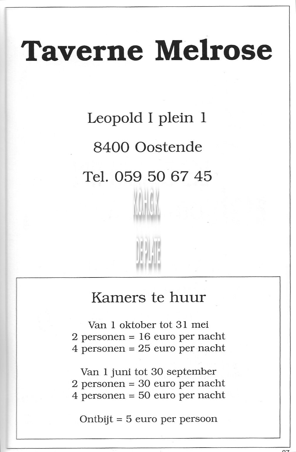 Advertentie : 't Kasteeltje = De Chatelet. Nieuwpoortsesteenweg 8, Oostende