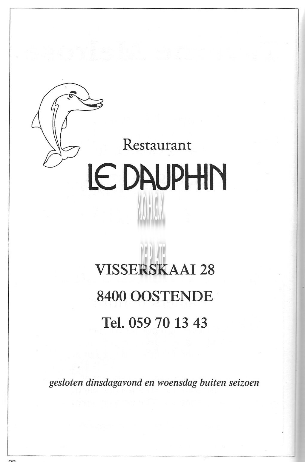 Advertentie : Le Grillon. Restaurant. Visserskaai 31, Oostende
