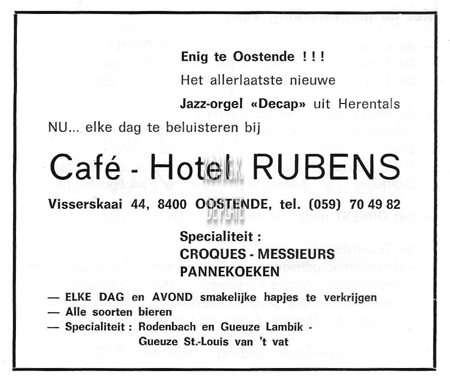 Advertentie : Rubens. Café - Hotel. Visserskaai 44, Oostende