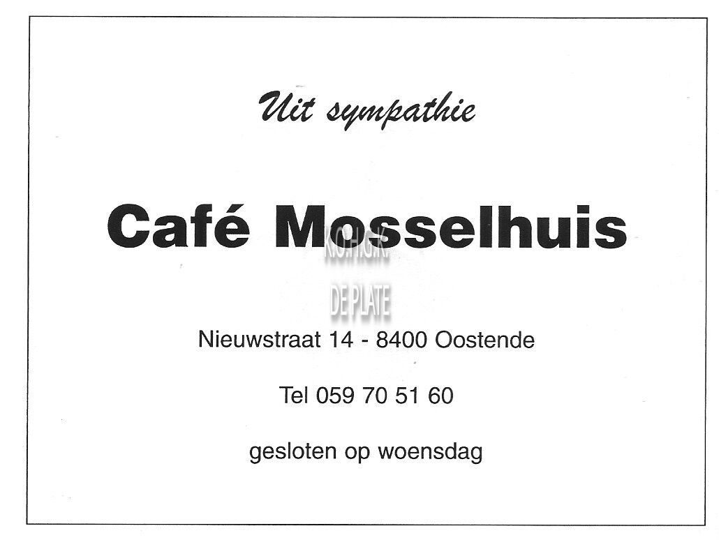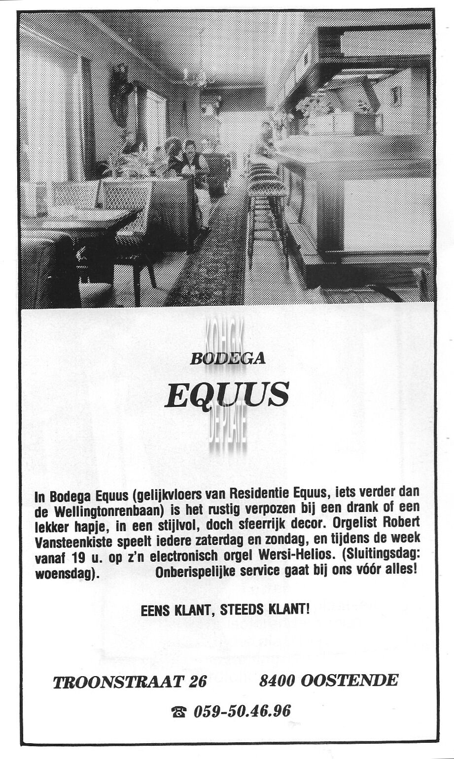 Trefwoorden ADVERTENTIES ; HORECAEQUUS (BODEGA)VANSTEENKISTE ROBERT (ORGELIST)TROONSTRAAT