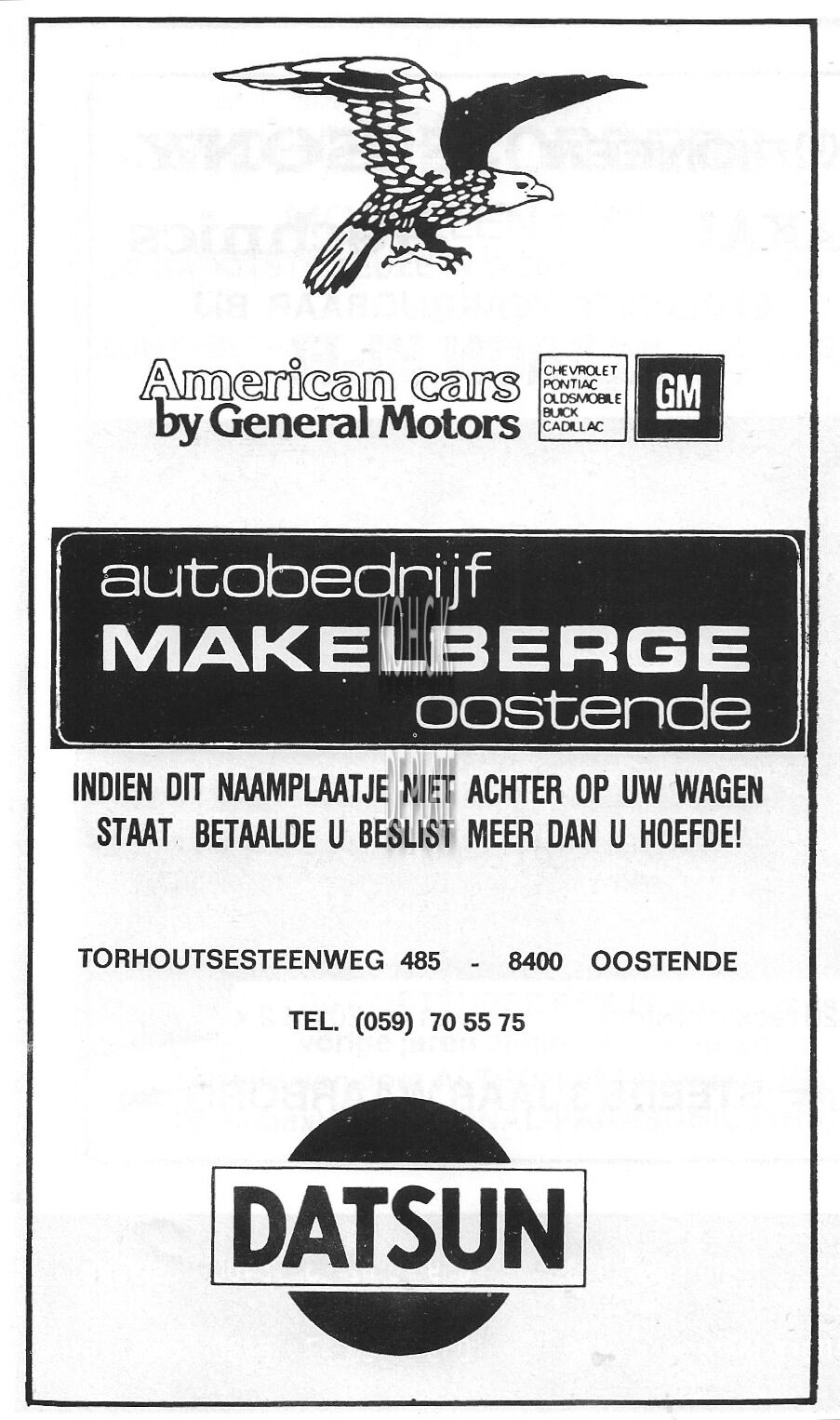 Advertentie : Makelberge. Autobedrijf. Torhoutsesteenweg 485, Oostende