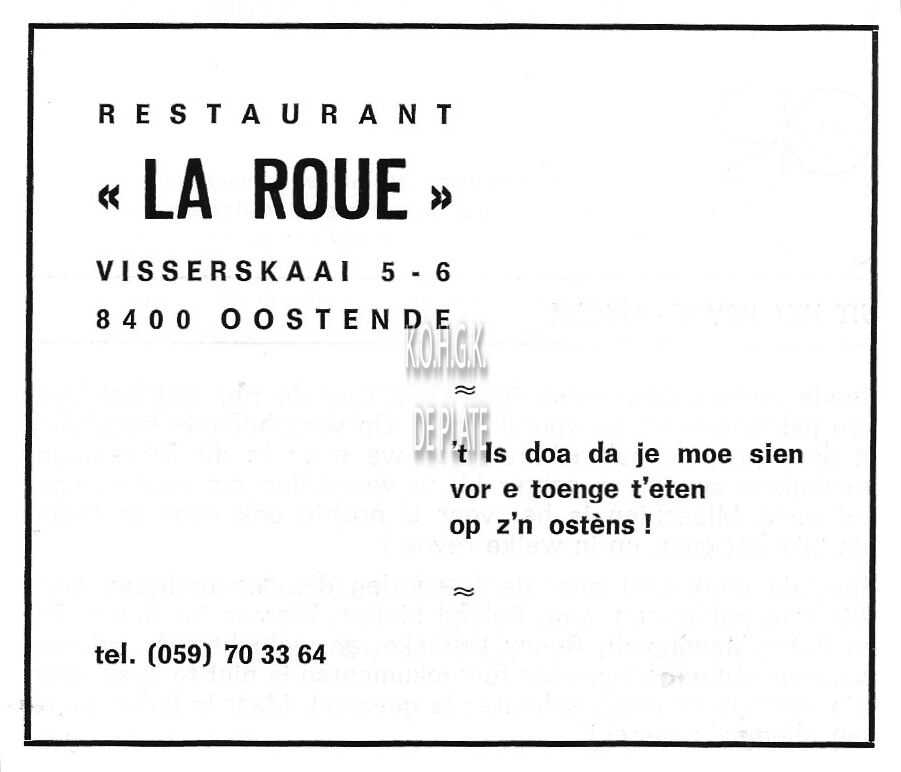 Trefwoorden ADVERTENTIES ; HORECASEALINK (FRITUUR-RESTAURANT)DUYCK ROBERT (TJEPPEN KROTTE) (OOSTENDSE REVUE)VLAMINCK CLAUDINENIEUWSTRAAT