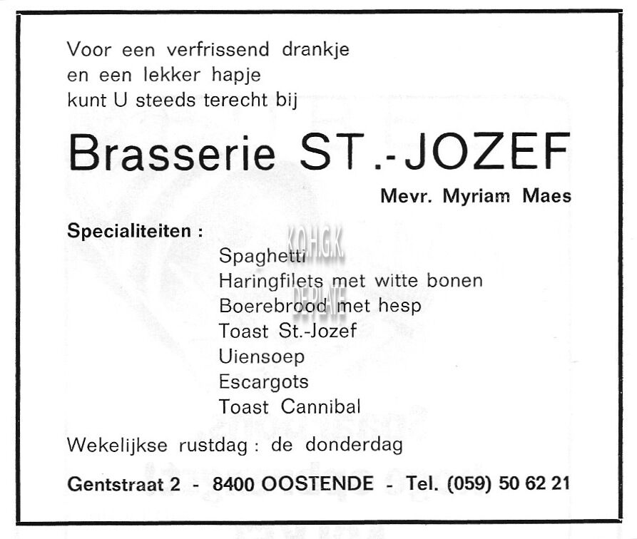 Advertentie : Brasserie St.-Jozef. Gentstraat 2, Oostende