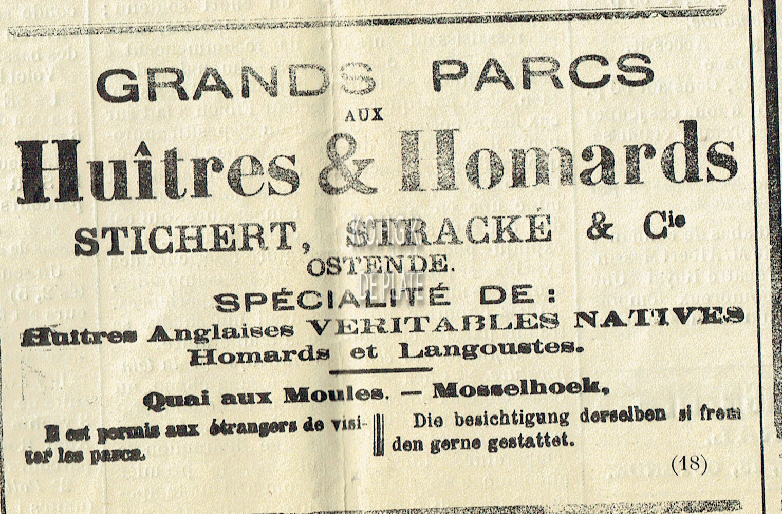Advertentie : Stichert, Stracké & Cie. Grands Parcs aux Huîtres & Homards. Quai aux Moules