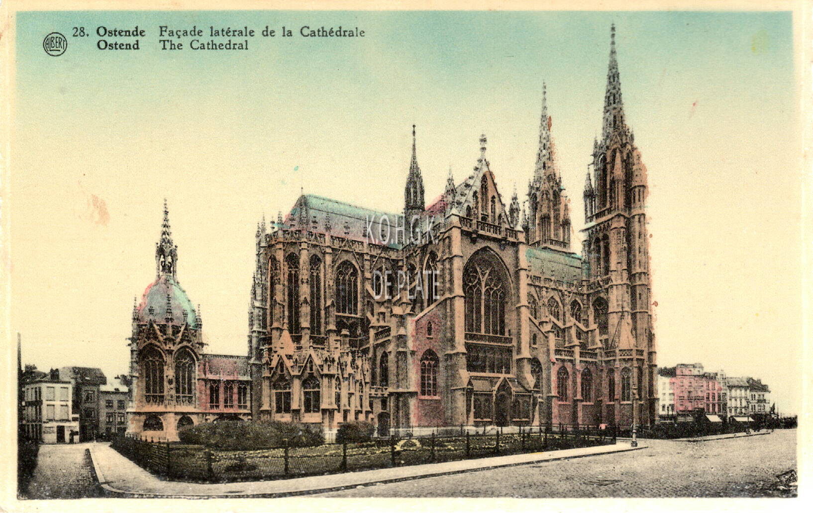 Albert 28. - Ingekleurd. - Ostende Façade latérale de la Cathédrale - Ostend The Cathedral
