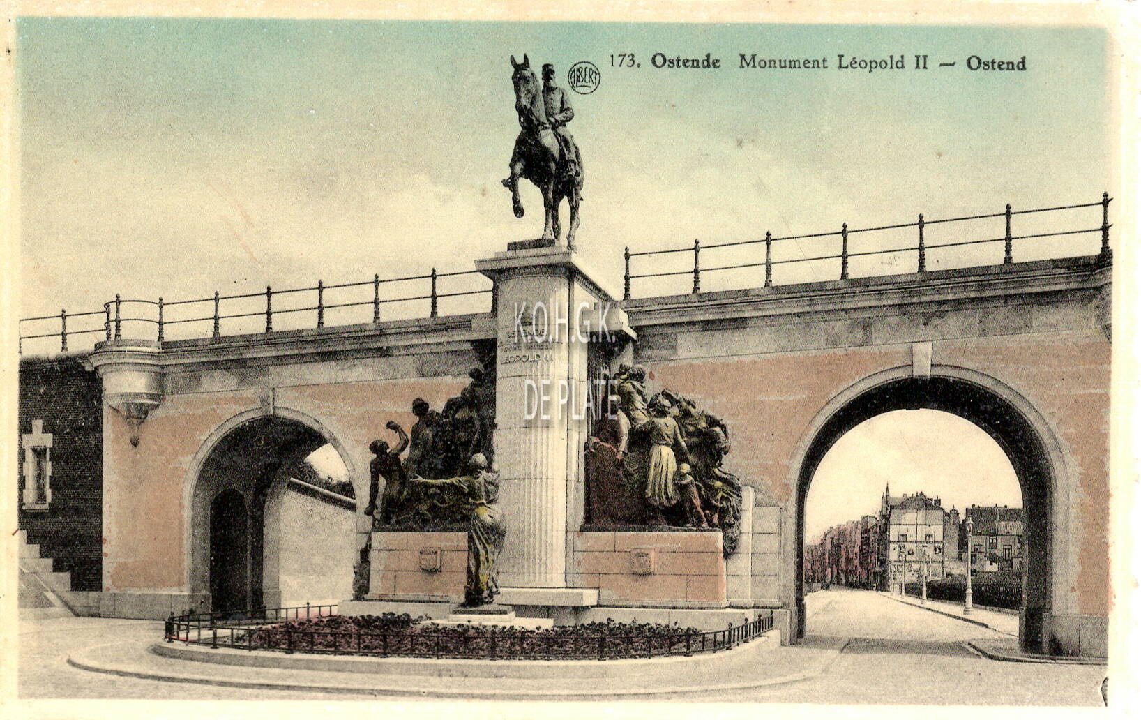 Albert 173. - Ingekleurd. - Ostende Monument Léopold II - Ostend