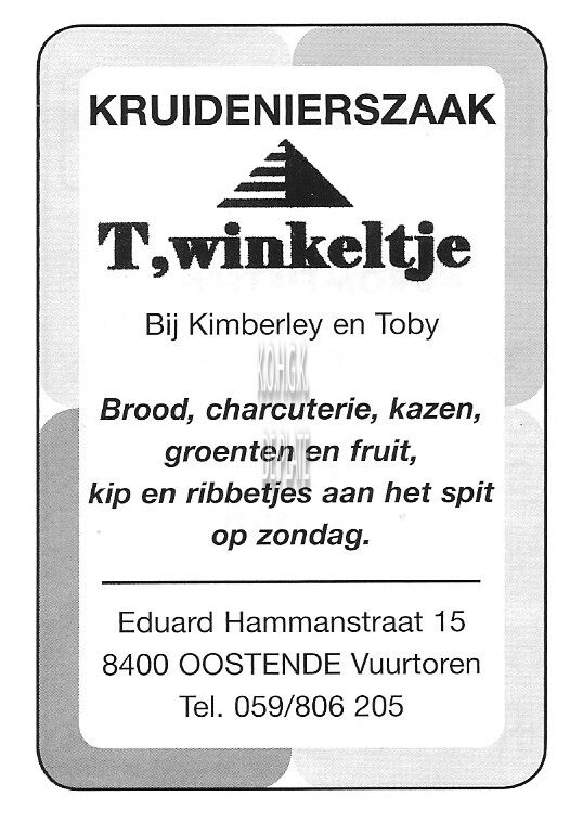 Advertentie : T,winkeltje. Kruidenierszaak. Eduard Hammanstraat 15, Oostende