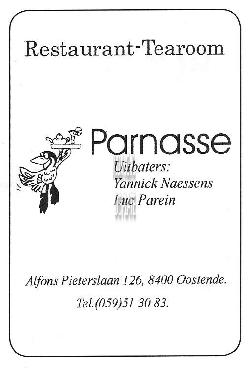 Advertentie : Parnasse. Restaurant - Tearoom. Alfons Pieterslaan 126, Oostende