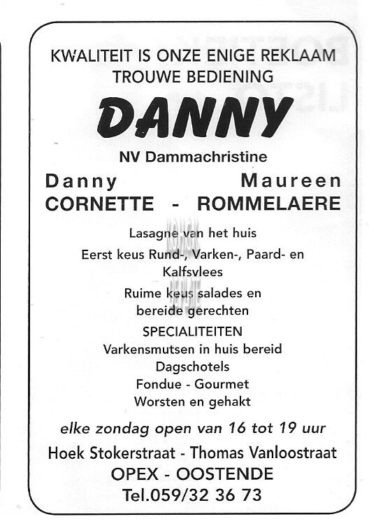 Advertentie : Danny. Slagerij. Hoek Thomas Van Loostraat en Stokersstraat 1, Oostende