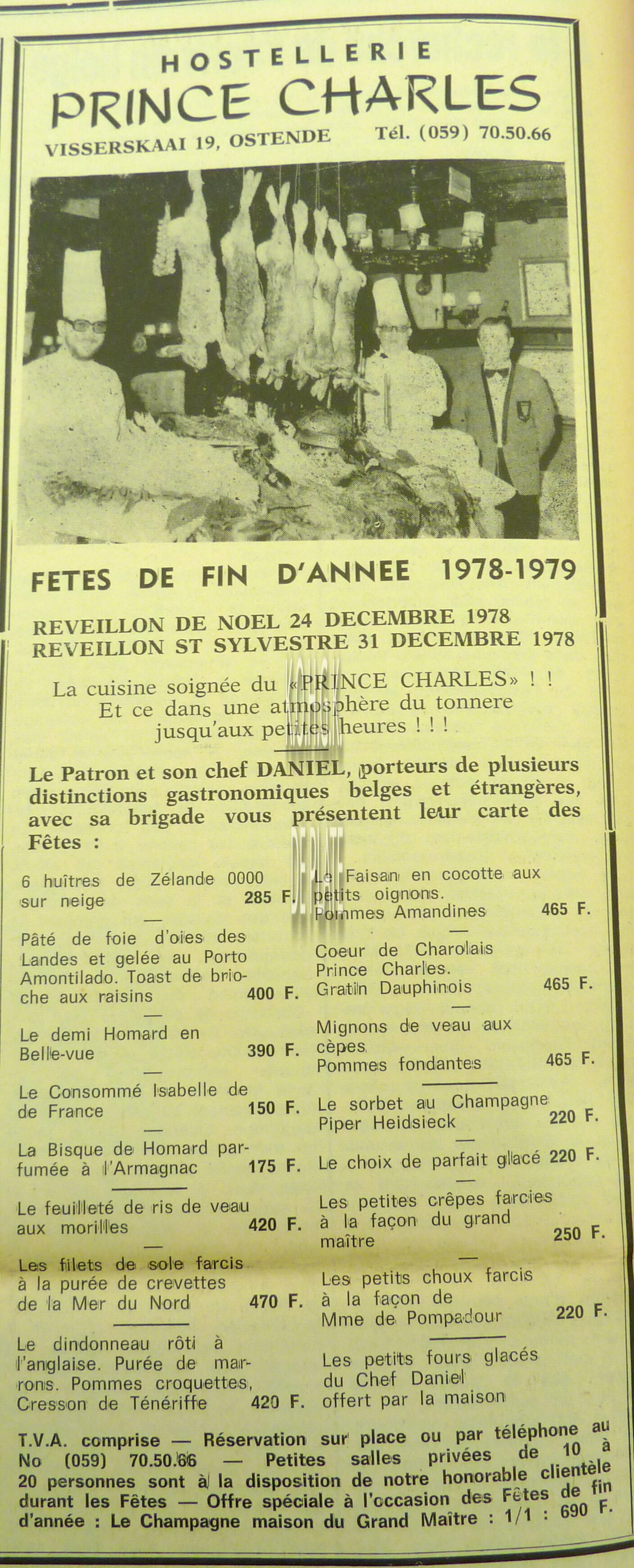 Foto : Prins Karel in gesprek met schepen Nicole Beschuyt. Links, Vic Van Geel, uitbater en Hugo Brutin en Van den Bussche