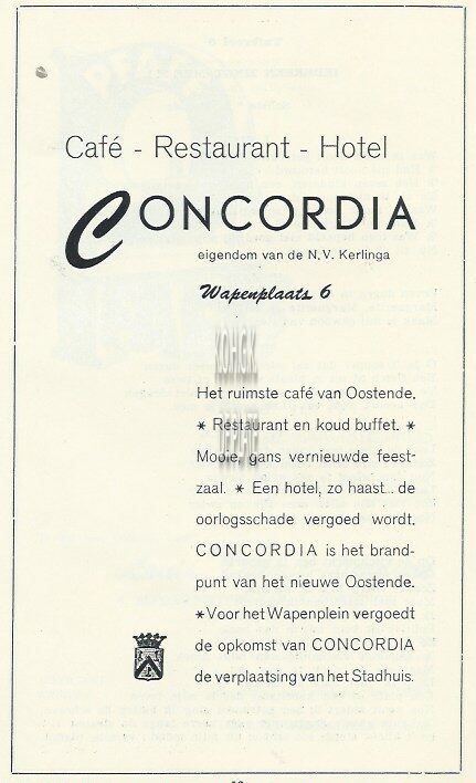 Advertentie : Concordia. Café - Restaurant - Hotel. Wapenplein 6, Oostende