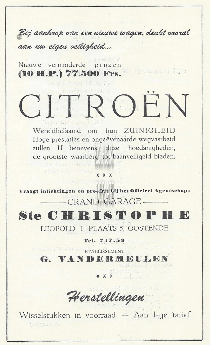 Verdeler Citroën. G. Vandermeulen (garagist)