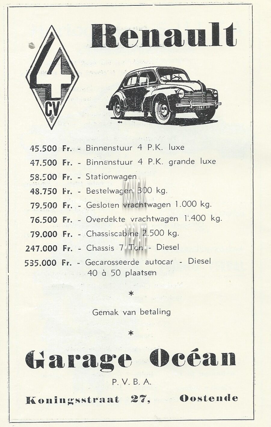 Advertentie : Garage Océan. Koningsstraat 27, Oostende