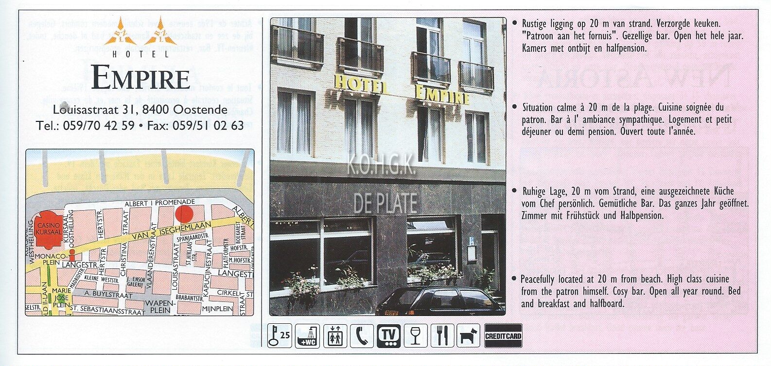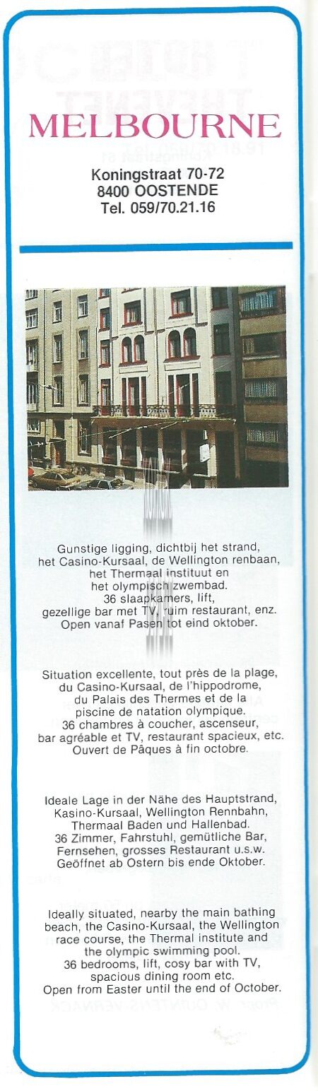 Advertentie : Hotel Melbourne. Koningsstraat 70-72, Oostende