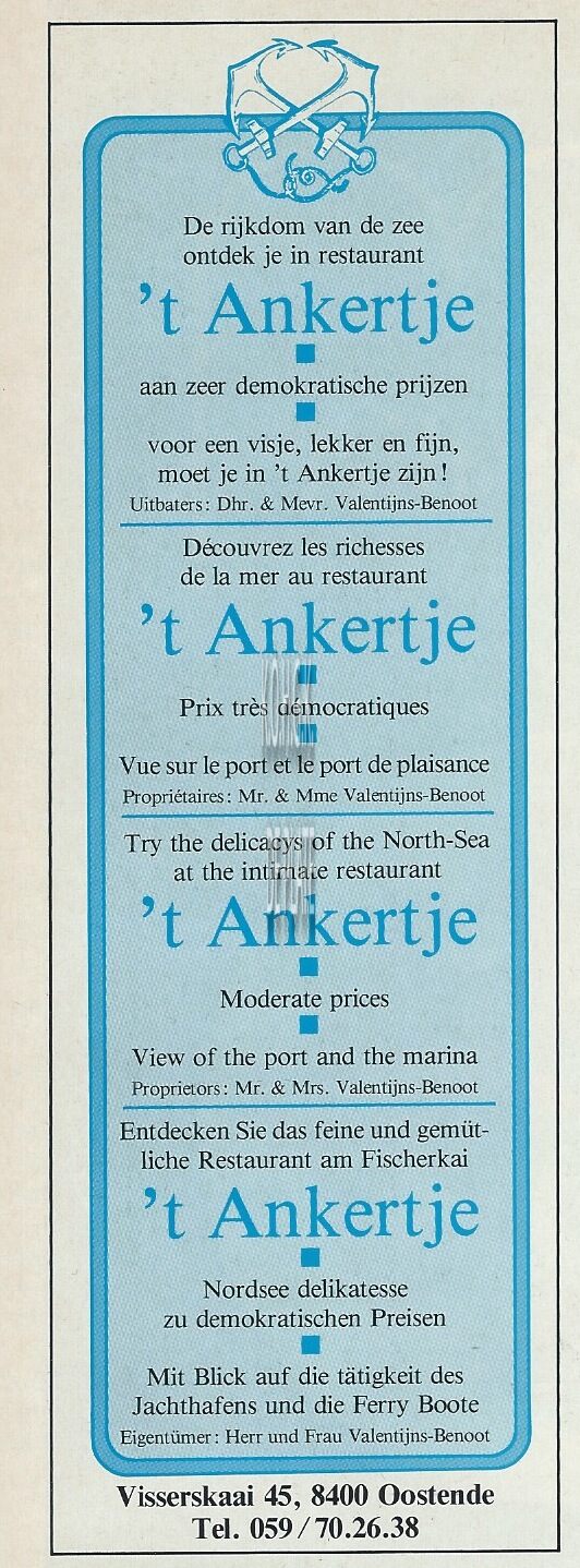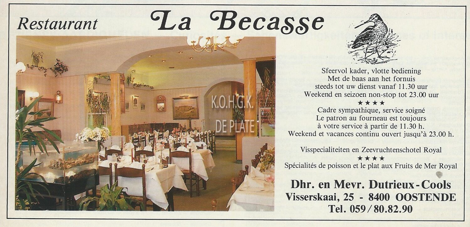 Advertentie : La Becasse. Restaurant. Visserskaai 25, Oostende