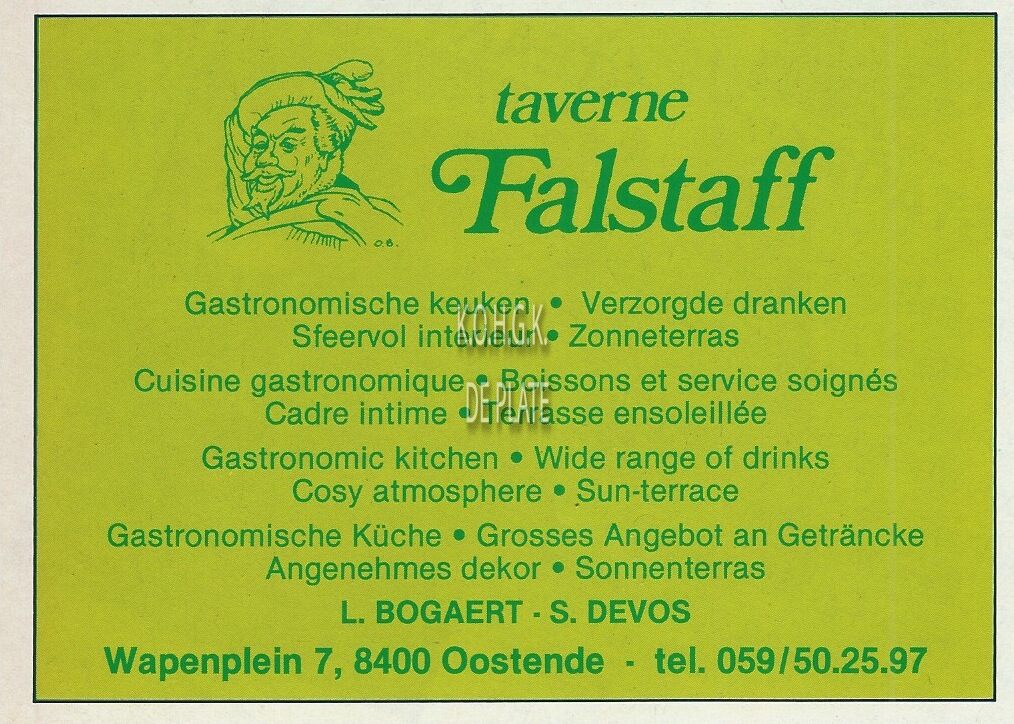 Advertentie : Taverne Falstaff. Wapenplein 7, Oostende