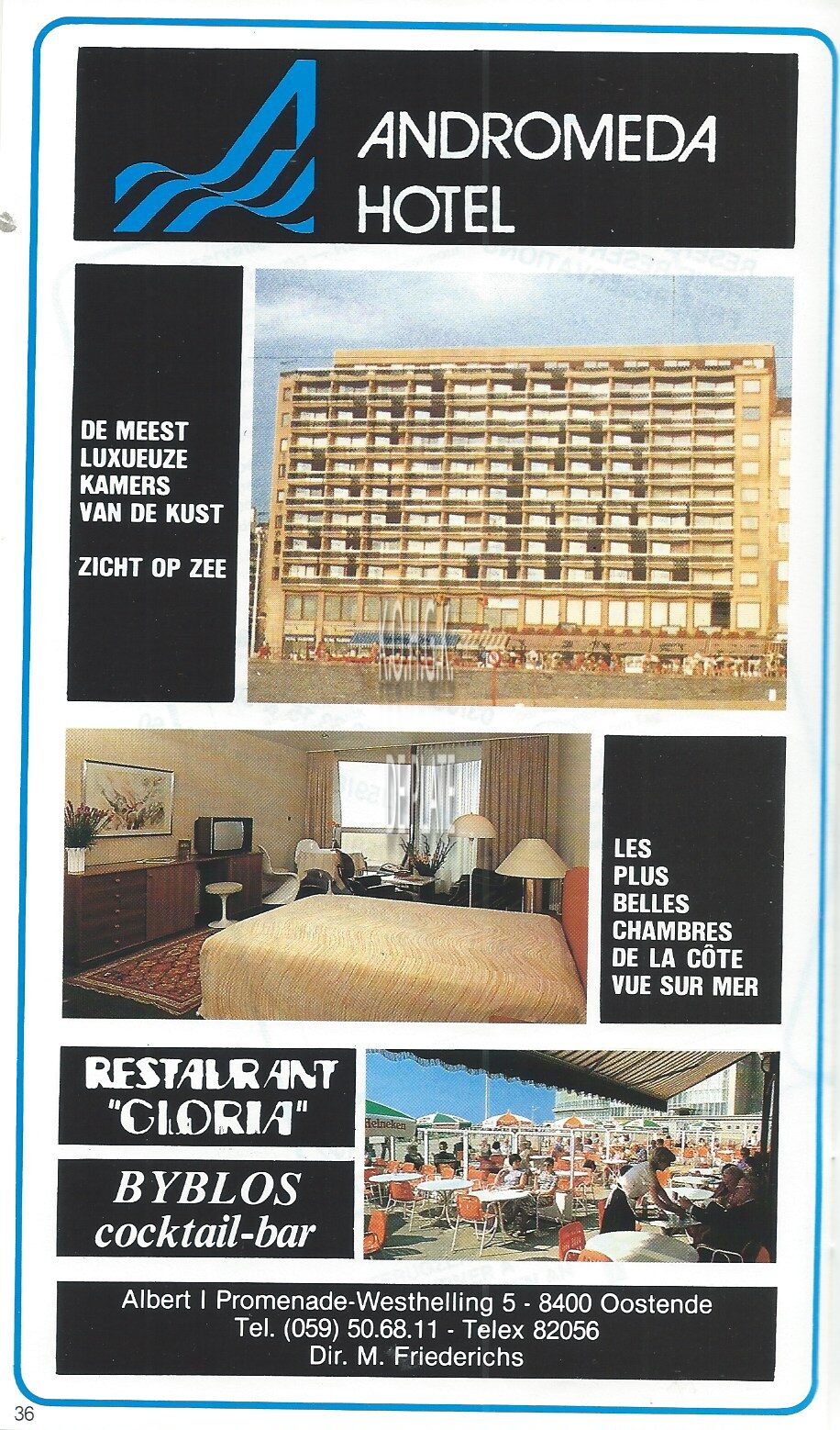 Trefwoorden GLORIA (RESTAURANT)HOTEL ANDROMEDAALBERT I PROMENADEFRIEDERICHS MARCEL (1926-2003) (POLITICUS HOTELIER)