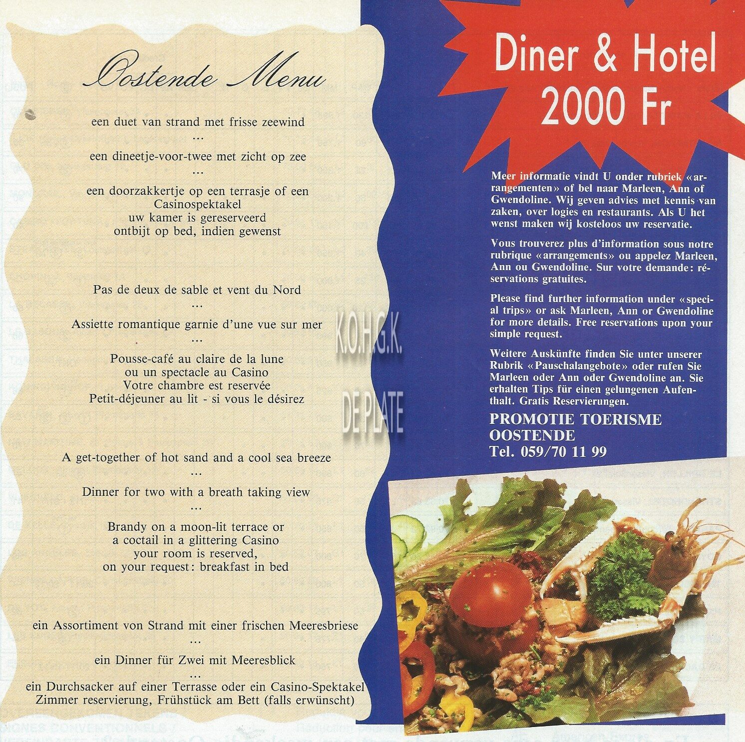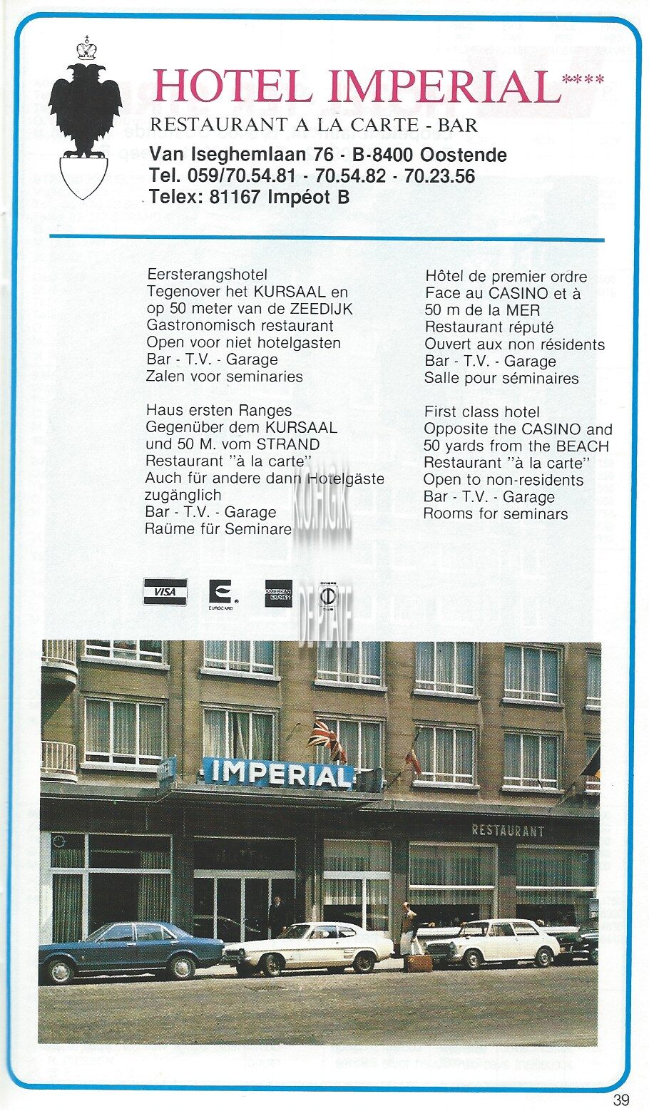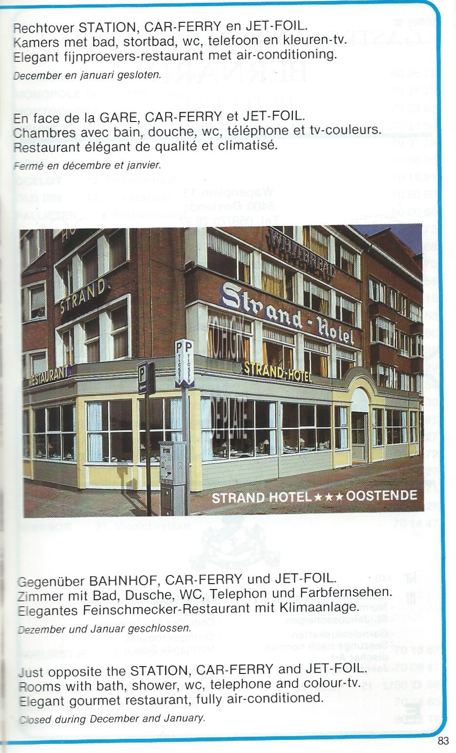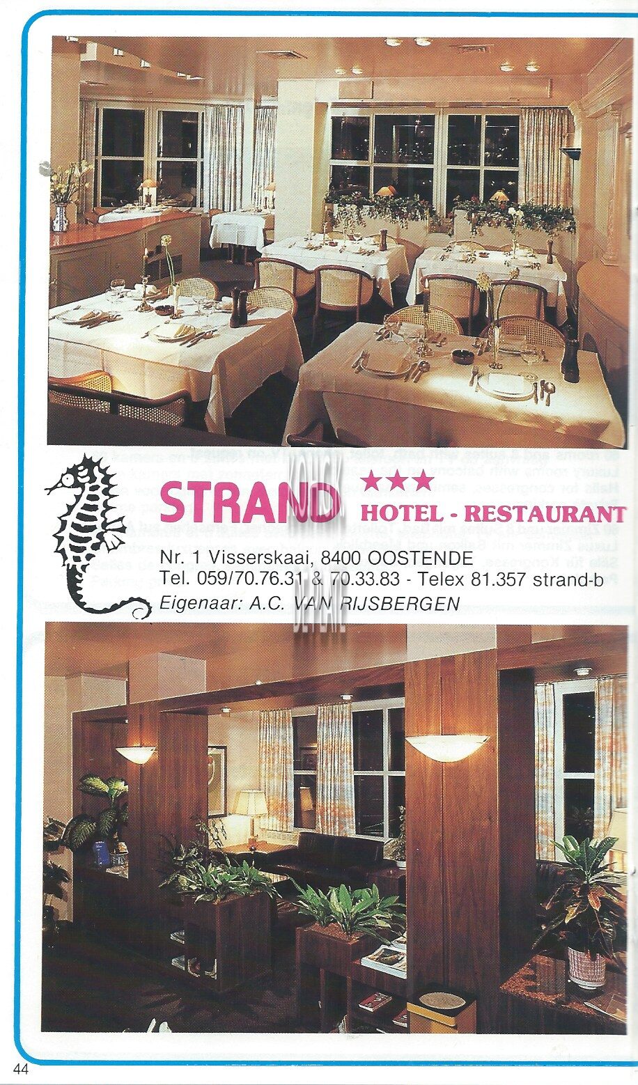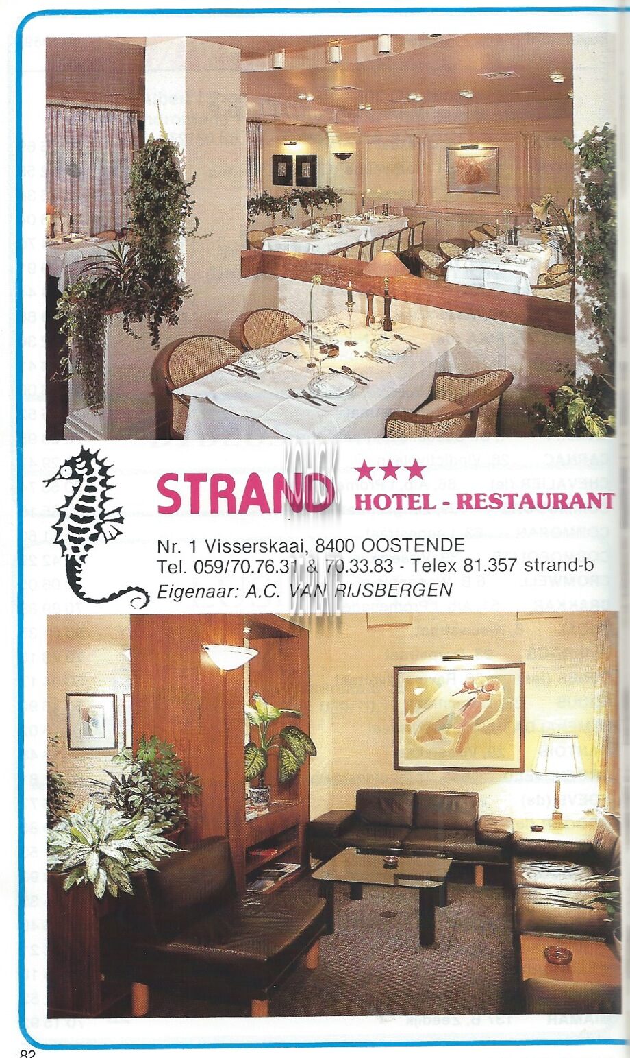 Advertentie : Strand. Hotel - Restaurant. Visserskaai 1; Oostende