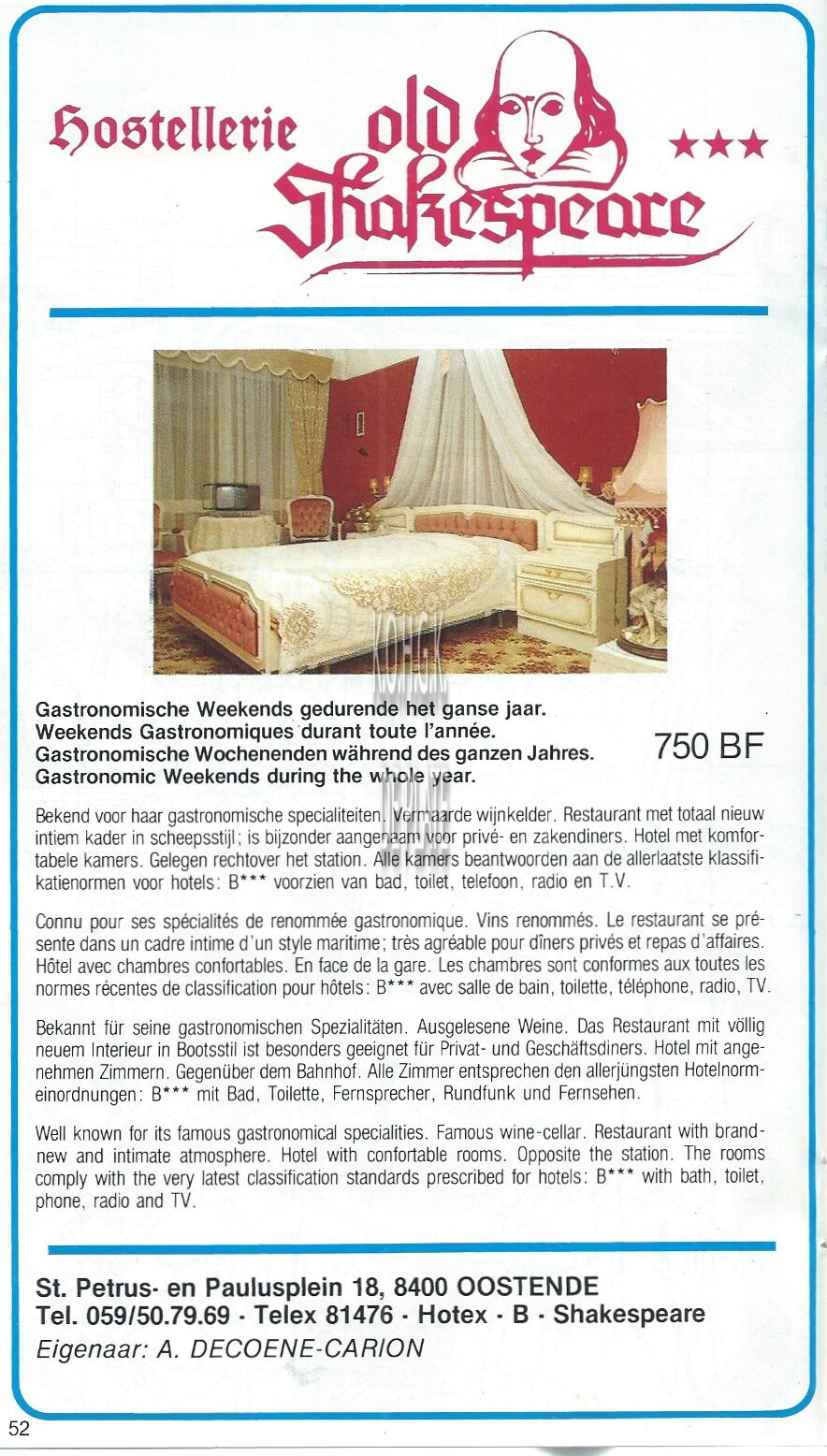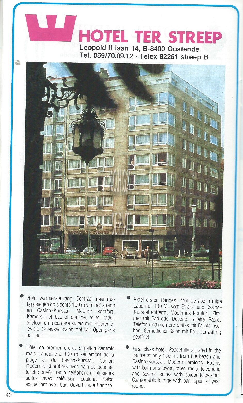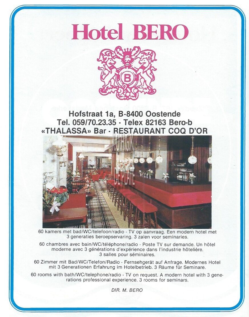 Advertentie : Hotel Bero. Hofstraat 1a, Oostende