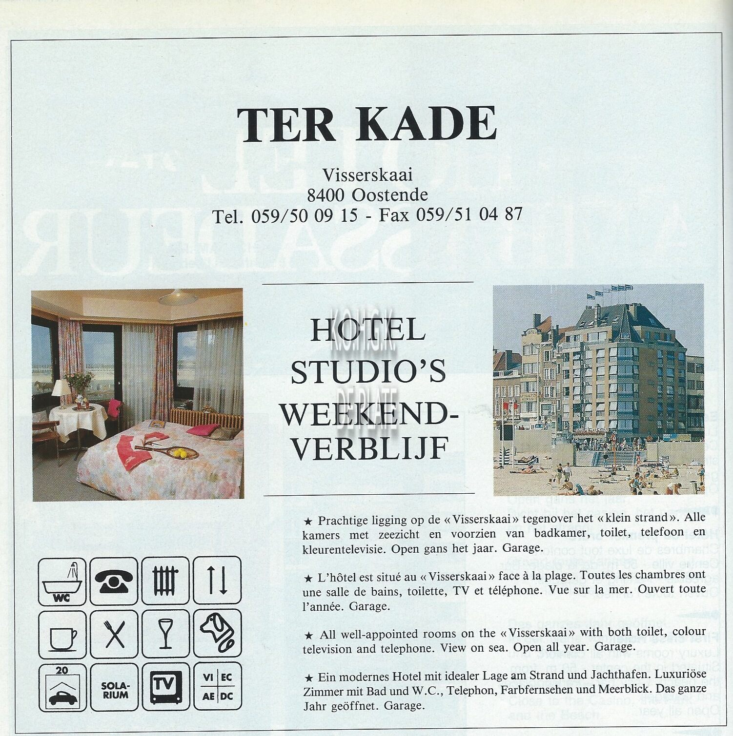 Advertentie : Hotel 'T Zoute. Polderijk 10, Oostende