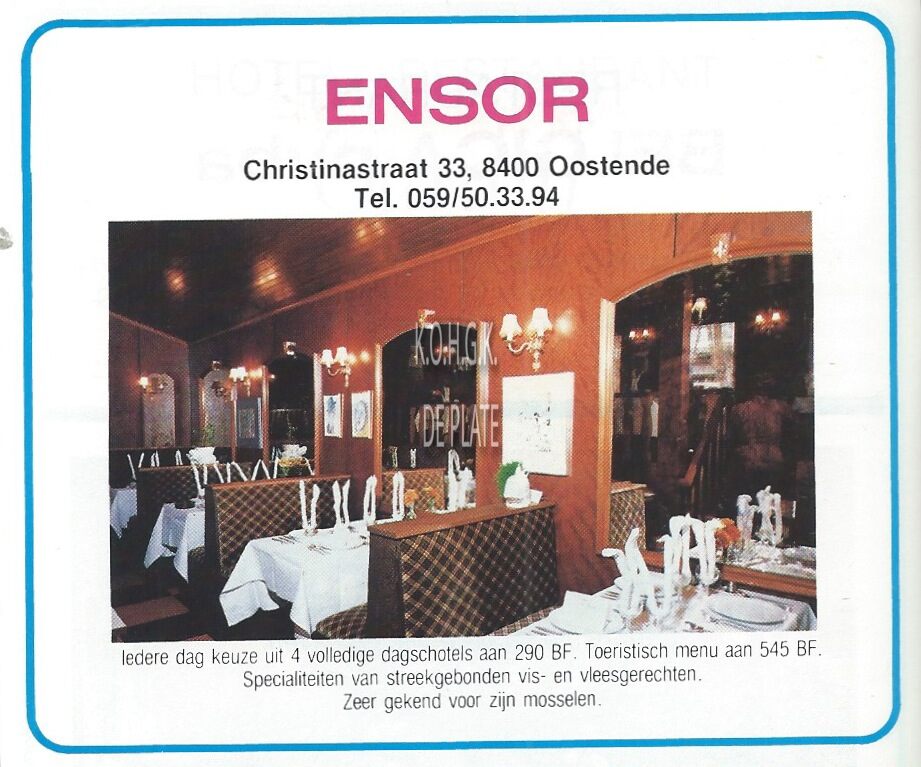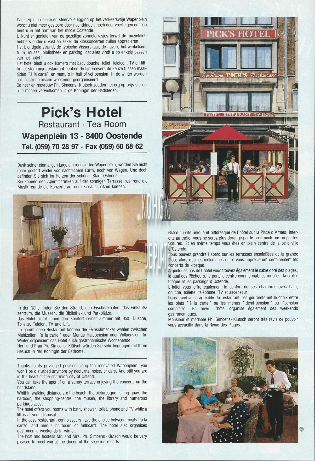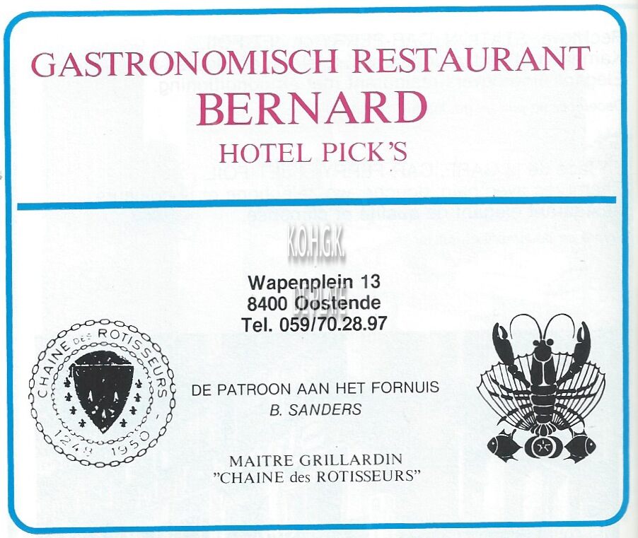 Advertentie : Gastronomisch restaurant "Bernard" (Hotel Pick's). Wapenplein 13, Oostende